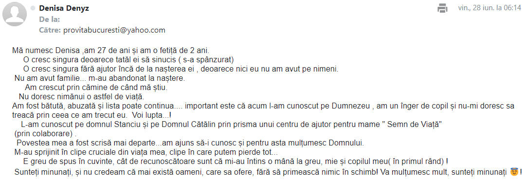 Denisa, mama despre care vorbim mai sus, a avut parte, așadar, de o viață complicată. Cu ajutorul vostru, am încercat să i-o facem mai simplă, dacă mai ușoară nu este posibil.